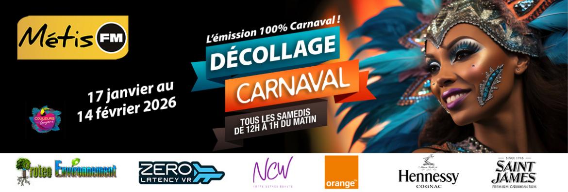 Retour de votre émission 100% Carnaval, Décollage Carnaval, tous les samedis de 12h à 1h, du 17 Janvier au 14 Février 2026 sur Métis. De 16h à 20h, R...