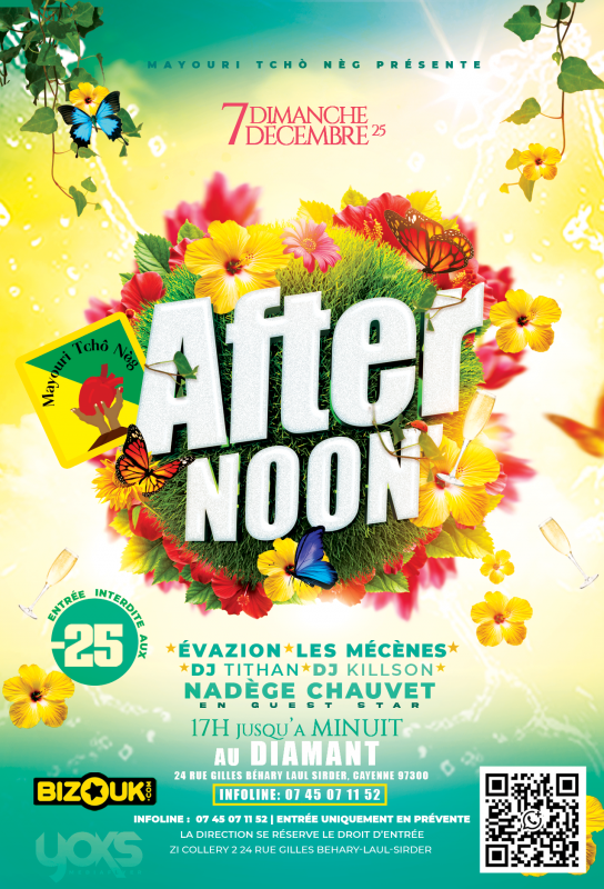 MAYOURI TCHO NEG présente sa Garden "AFTERNOON", le dimanche 7 Décembre 2025 dès 17h au Diamant, avec les orchestres EVAZION, LES MECENES et NADEGE CHAUVET en Guest.