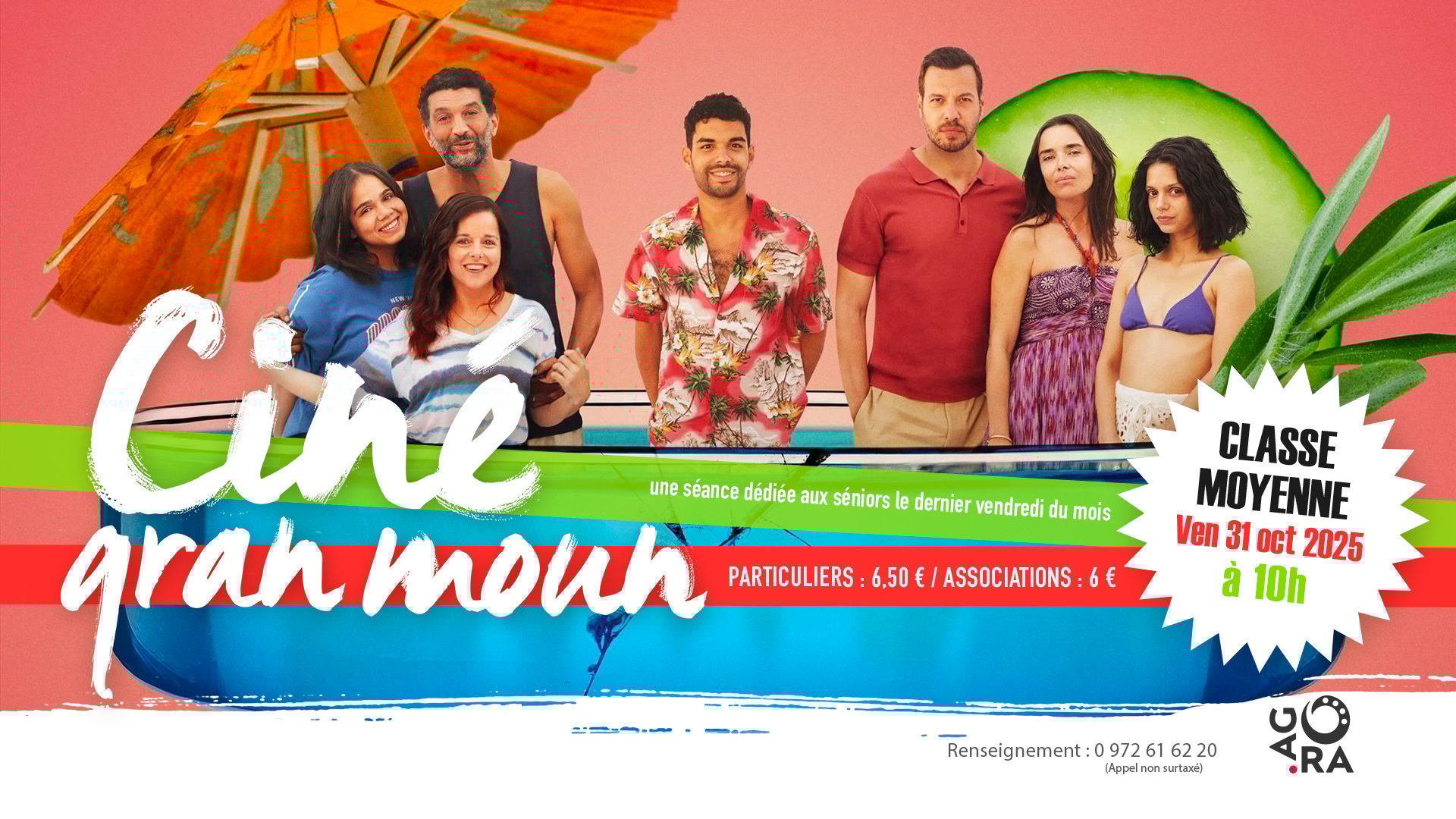 AGORA vous donne Rendez-vous le Vendredi 31 Octobre 2025 dès 10h, pour son Ciné Gran Moun avec à l'affiche le film " Classe Moyenne ". Tarif associations : 6€. Tarif particuliers : 6€50.