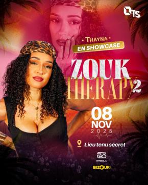 OTS EVENTS présente sa soirée "ZOUK THERAPY 2", le samedi 8 novembre 2025 dès 22h avec les artistes THAYNA et DORY en Showcase. Tickets en prévente à partir de 15€ sur Bizouk et Sabouj.fr