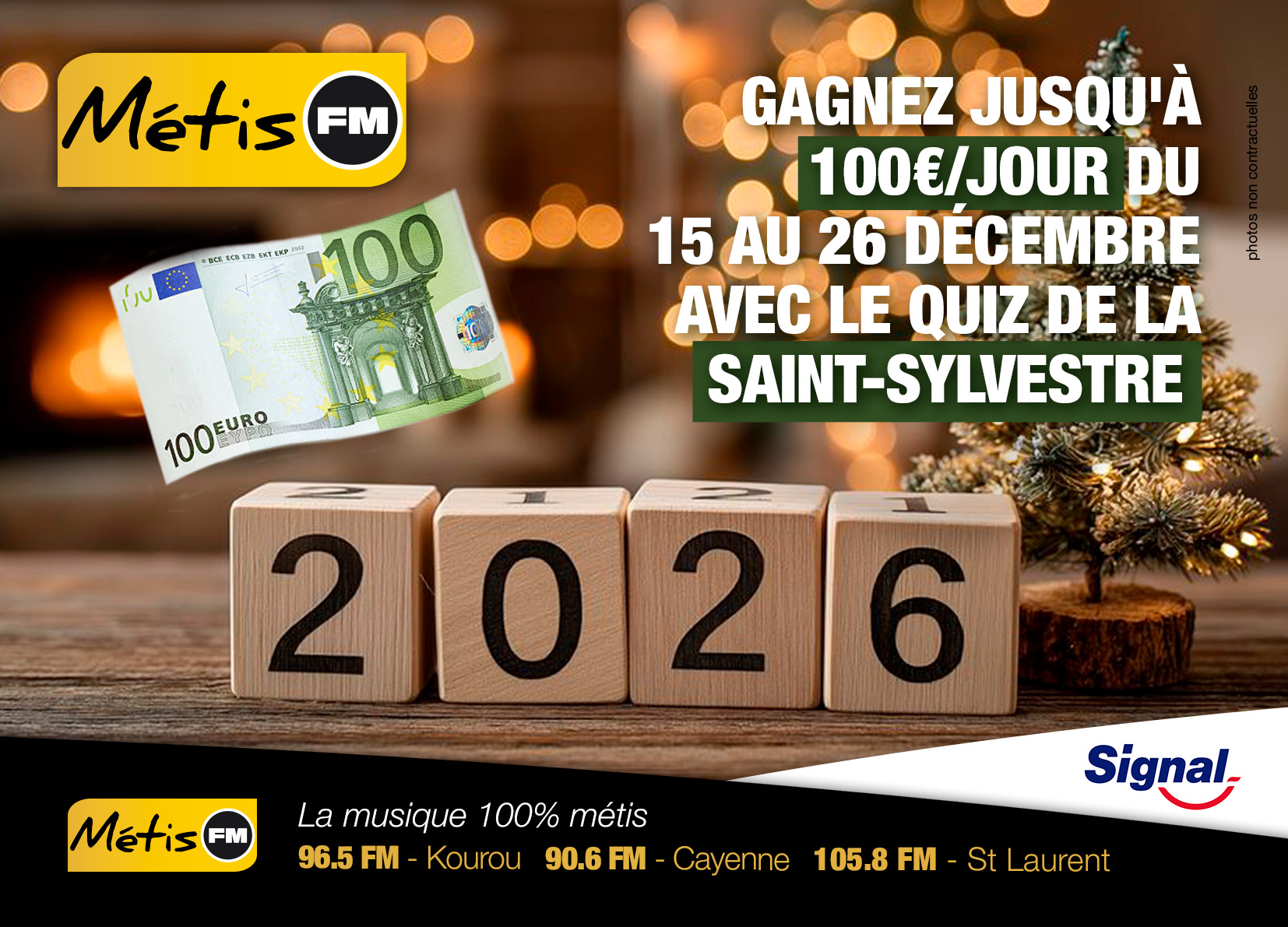 Alors Jouez au "Quiz De La St Sylvestre" avec la participation de Signal, tous les jours entre 11h et 13h sur Métis.