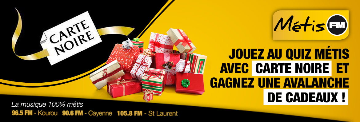 Alors jouez au "QUIZ METIS" avec CARTE NOIRE, tous les jours entre 11h et 13H dans "Génération Métis". Pour participer, envoyez-nous vos coordonnées (nom, prénom et numéro de téléphone) par message privé sur Facebook ou Instagram ou appelez au 0594292985.
