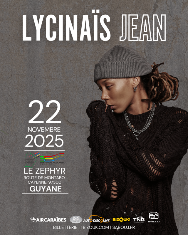 Retrouvez LYCINAIS JEAN en concert live le samedi 22 Novembre 2025 dès 20h au Zéphyr. Tickets en prévente à partir de 30€ sur Bizouk et Sabouj.fr